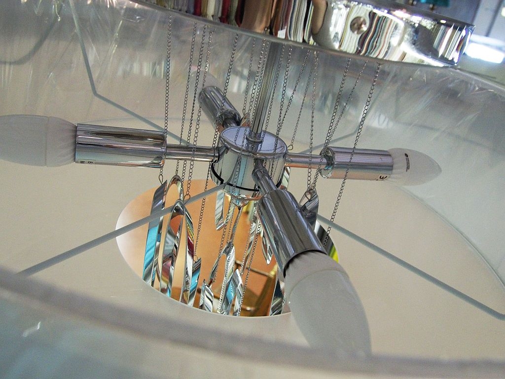 Потолочный, современный светильник из коллекции Domo с белым абажуром и стильными, стальными подвесами ассиметричной формы на цепочках в центре. Нижний рассеиватель выполнен из полупрозрачного метакрилата. Лампочки: 4шт E14 LED 4W. Фабрика Schuller выпускает актуальные модели современных светильников, зеркал и мебели из полированной стали с возможностью комплектации всего интерьера "под ключ".