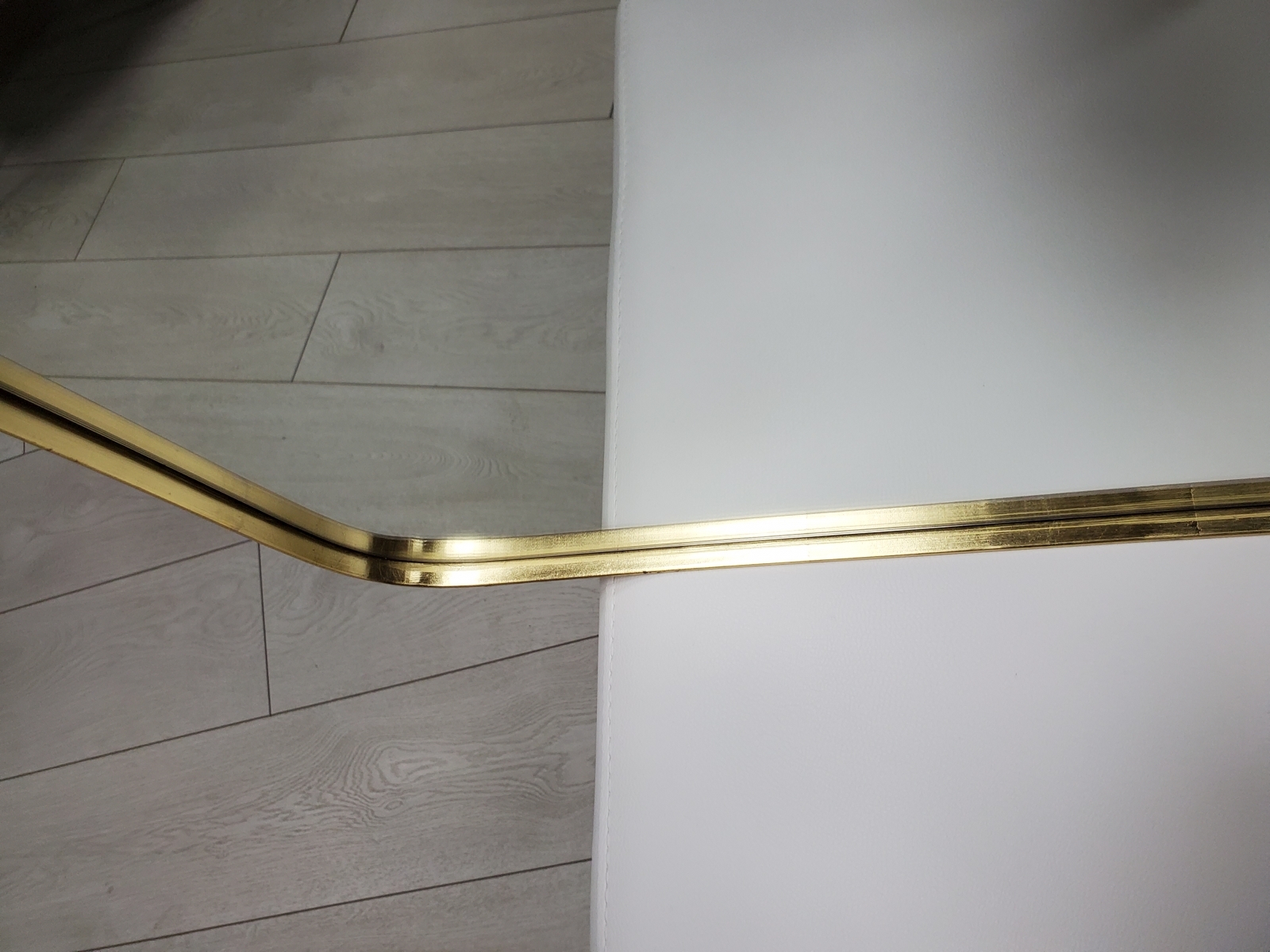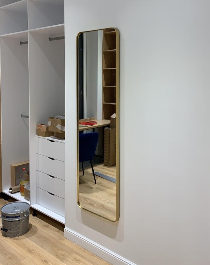 Прямоугольное зеркало Orio шириной 50 см в тонкой золотой раме из МДФ cо стильным покрытием из золотой фольги. Скругленные углы- отличительная особенность всей одноименной коллекции, которая представлена и круглыми, и квадратными, и даже треугольными зеркалами различных размеров, открывая широкие возможности при оформлении современного интерьера.
