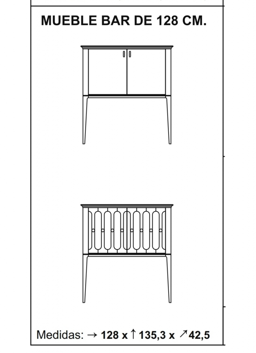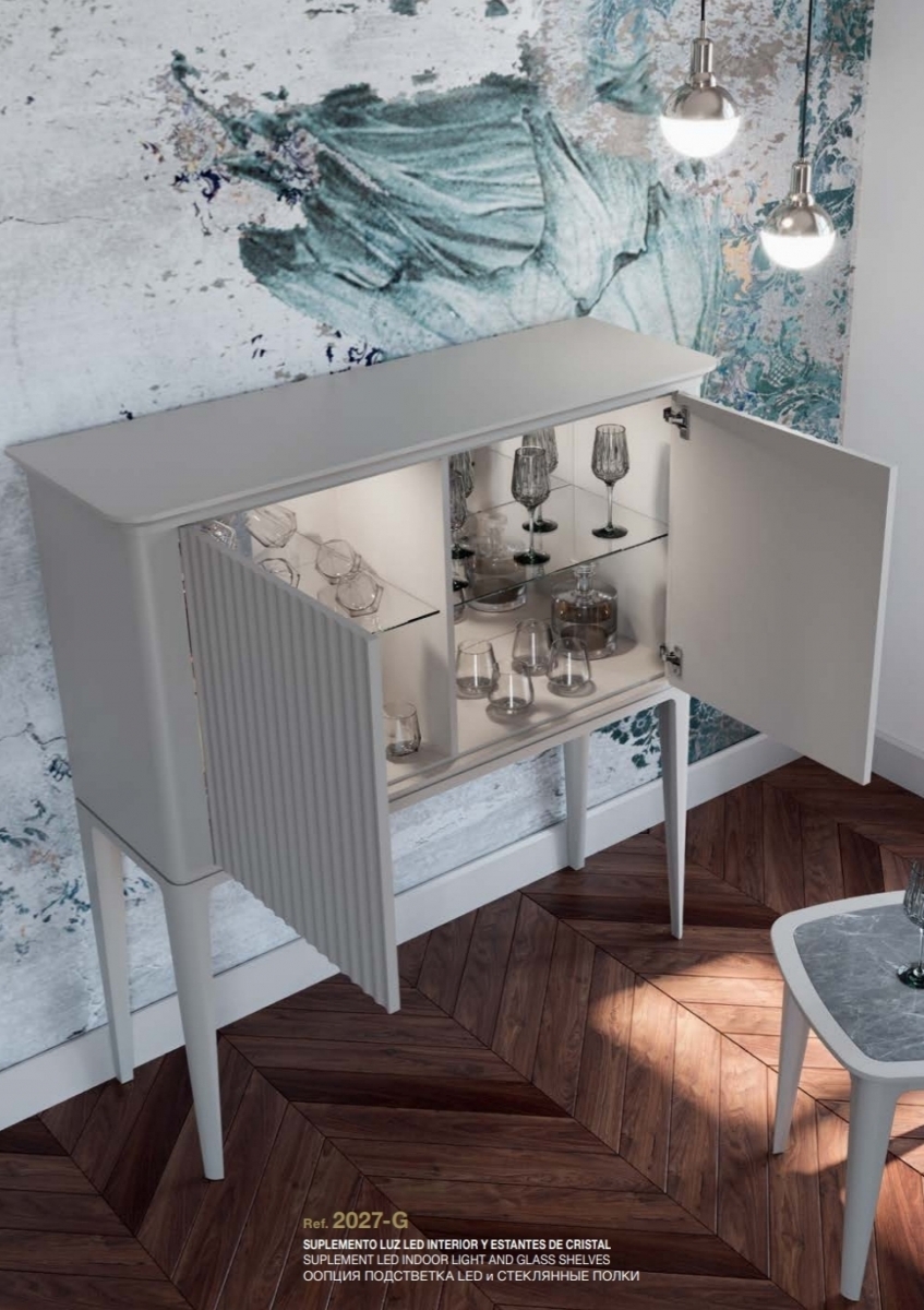 Элегантный барный шкаф на высоких ножках из коллекции Мария испанской фабрики Mugali. Фрезеровка на дверцах добавляет изысканности, благодаря вертикальным линиям, при желании можно выбрать другой тип гравировки из трех. Изготовленный в любом цвете бар станет украшением интерьера. В стандартном исполнении полки делают из мдф, опционально - из стекла, с дополнительной led подсветкой внутри.