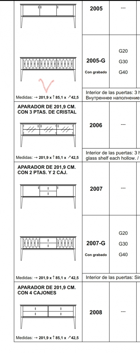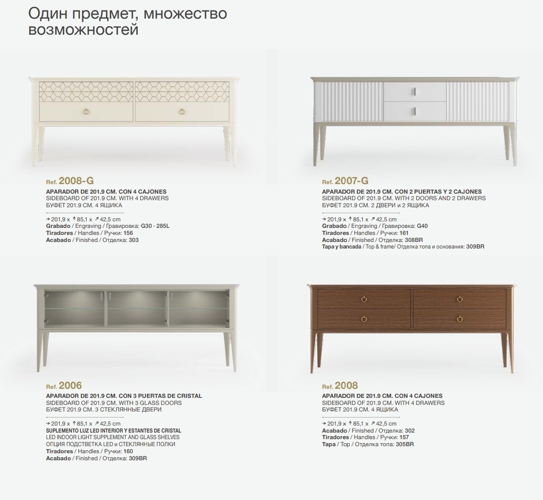 Комод Maria 225 см с 4мя дверцами Mugali