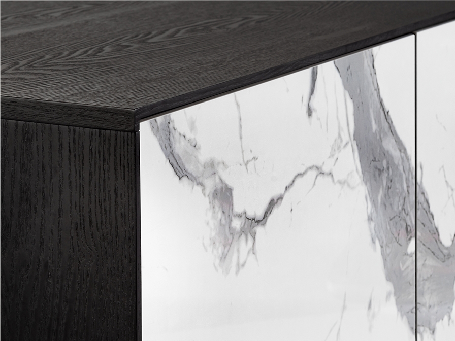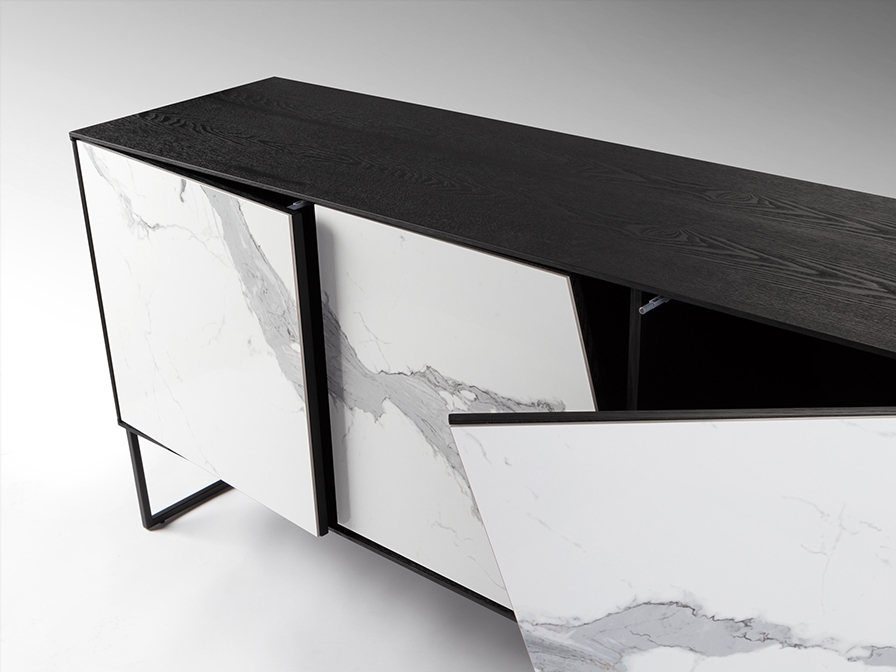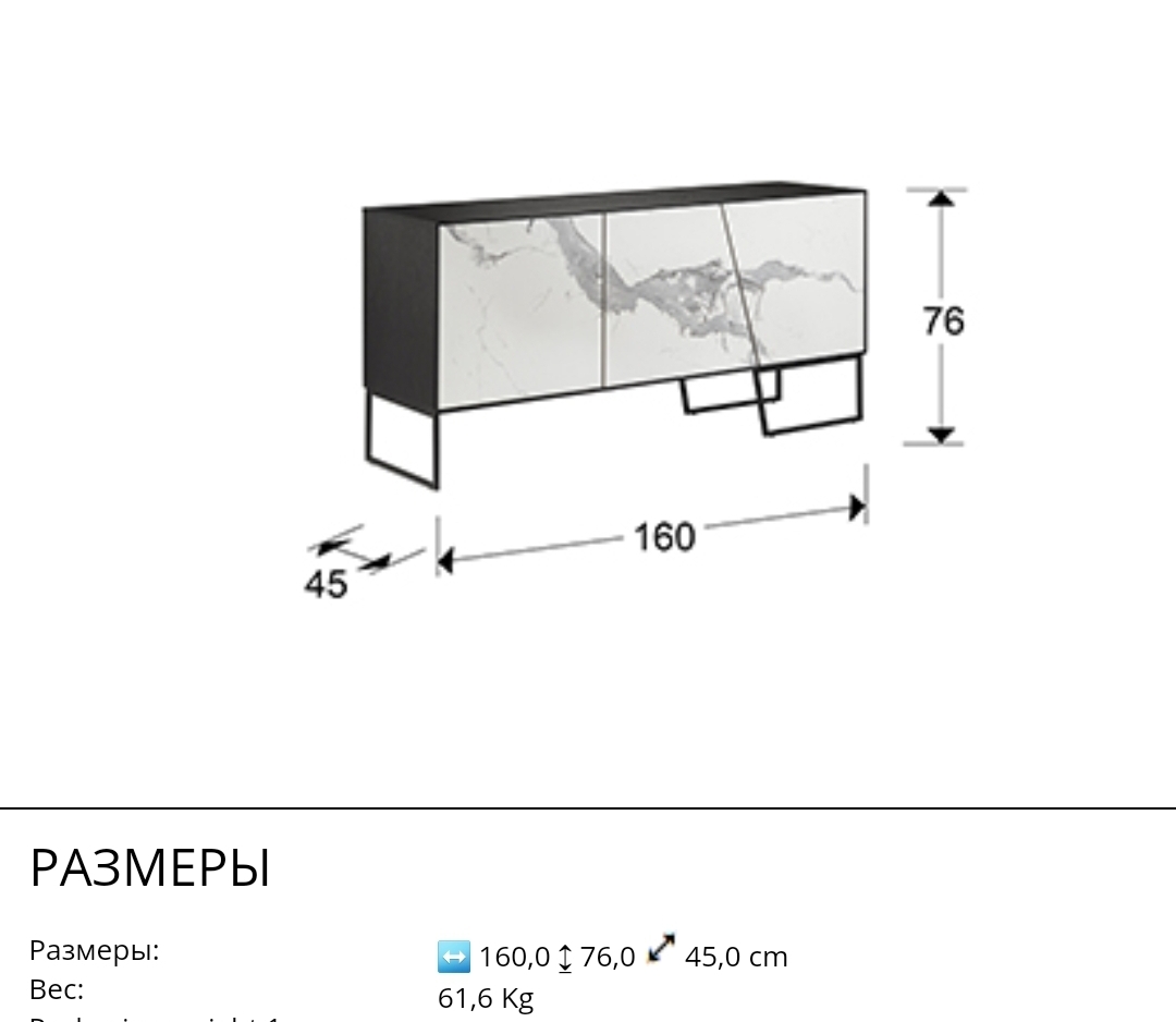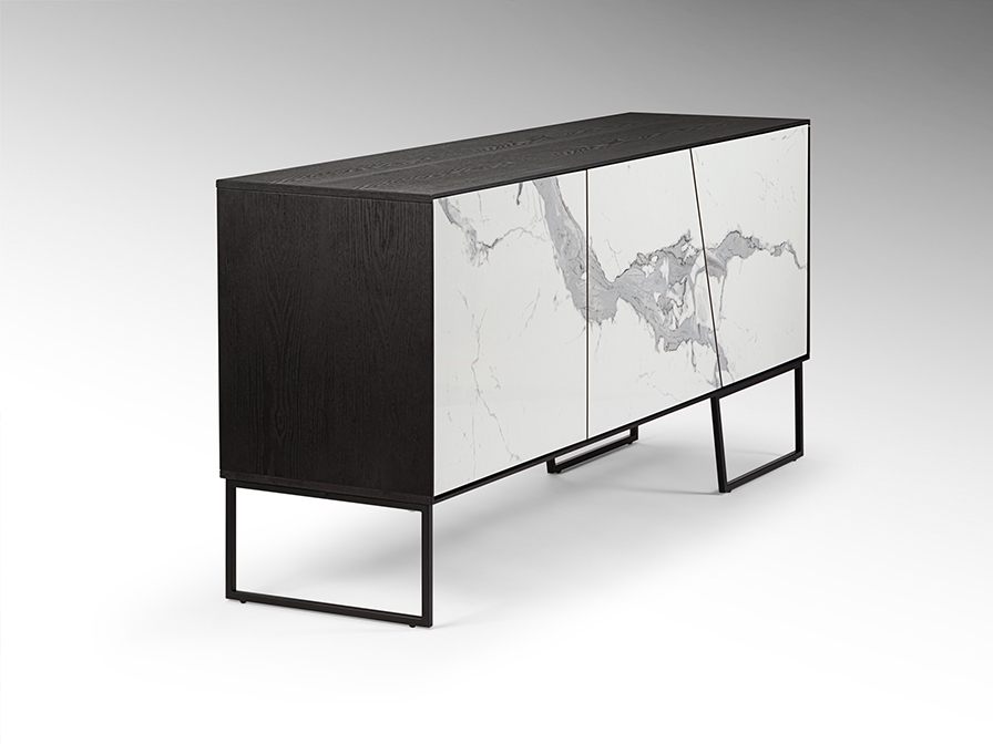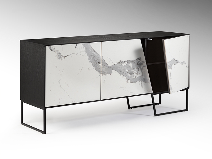 Новинка фабрики Schuller - эффектный черный комод Kerala арт. 603645 длиной 160 см с тремя дверцами, фасады которых сделаны из стеклокерамики- имитации белого мрамора с темными прожилками. Каркас комода изготовлен из мдф чёрного цвета со шпоном ясеня, опорные ножки из металла также чёрного матового цвета. Новая стильная коллекция Kerala включает также и тв тумбу длиной 180 см. Купить любой предмет мебели Schuller , включая журнальные столики, легко в нашем интернет-магазине, сделав заказ на сайте, отправив его на почту либо позвонив по телефону в Москве.