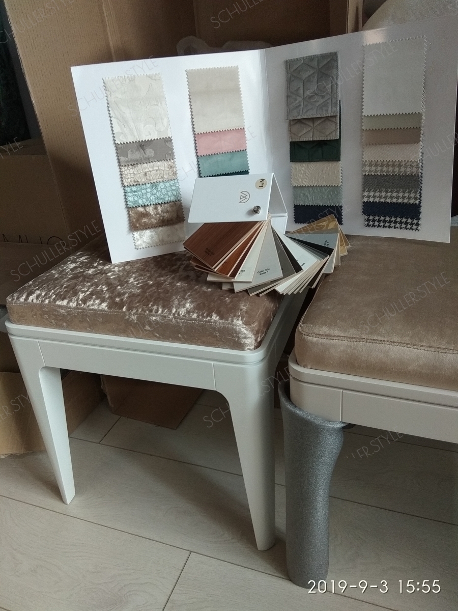 Круглое зеркало диаметром 80 либо 100 см , а также прямоугольный пуфик на фото также доступны к заказу с возможностью выбора цвета отделки.