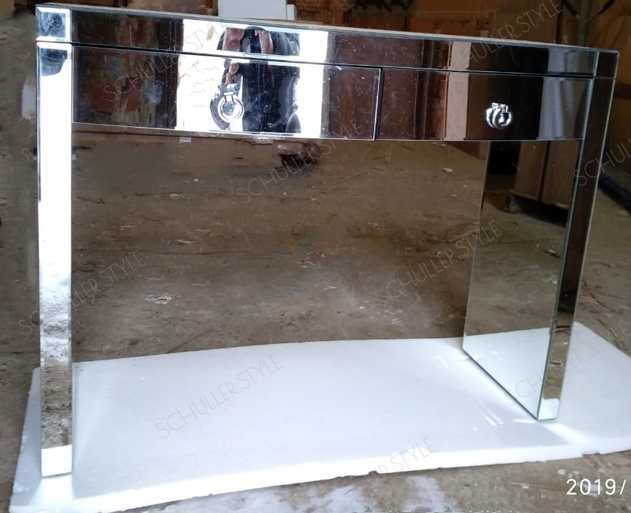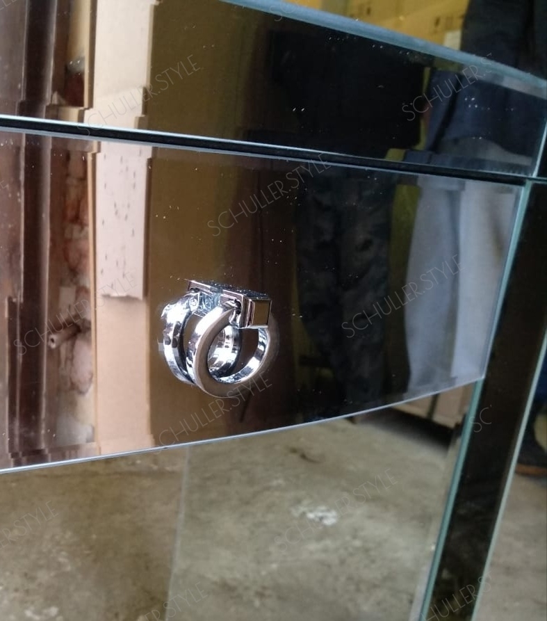 Стильная, современная консоль "Скарлетт" с красивой зеркальной облицовкой соответствует популярным тенденциям в дизайне современных интерьеров квартир. Плавные формы фасада консоли переходят в практичные выдвижные ящики, украшением которых являются круглые хромированные ручки. Ножки прямые. Каждая зеркальная деталь с декоративной фаской ( огранкой края). Компактные размеры 97*40*75 h дают возможность поставить консоль в ограниченном пространстве прихожей либо комнаты, сохраняя ощущение простора, благодаря зеркалам. Купить зеркальную консоль из наличия в Москве просто, сделав заказ в нашем интернет-магазине.