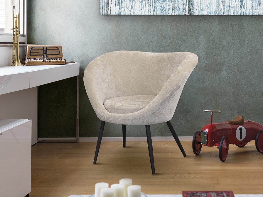 Современное кресло Ozome 836294 фабрики Schuller с фигурной спинкой и обивкой из мягкого бежевого шенила 100 % ПЭ. Ножки металлические черного цвета. Кроме формы эту модель украшает отстрочка по вешнему контуру. Эти кресла можно ставить парой там, где есть свободное пространство в помещении, в иных условиях хорошо будет смотреться одиночная модель.