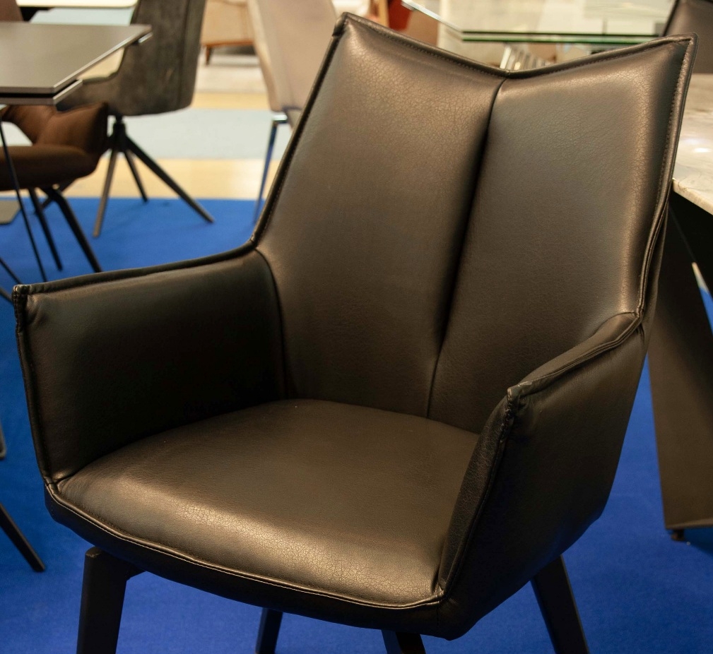 Многие современные интерьеры кухни имеют барную стойку либо стилизованный под нее обеденный стол. Черное полубарное кресло Soho с высокими подлокотниками и декоративной отстрочкой по всему периметру отлично подходит для создания комлекта. Устойчивый каркас выполнен из металла. Обивка из черной экокожи премиум класса. Складская программа в Москве. Цена актуальна при покупке от двух штук.