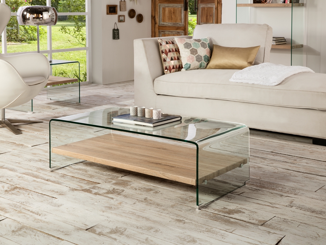 Современный журнальный столик длиной 110 см с плавными формами из 10 мм прозрачного закаленного стекла с удобной внутренней полкой из MDF с прочным меламиновым покрытием в светлой отделке "дуб Сонама". При сборке её очень легко положить на металлические держатели внутри стола. В коллекцию мебели малых форм Sonama от испанского бренда Schuller входят также консоль, которую можно купить в нашем интернет- магазине schuller.style с оперативной доставкой. Эти модели отлично смотрятся в интерьерах, оформленных в популярном скандинавском стиле, этническом и в современном минимализме. Отдельно стоящие либо в сочетании с окружающей мебелью.