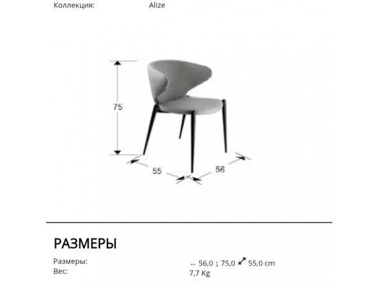 Стильный стул с утонченными ножками из металла из коллекции Alize фабрики Schuller. Обивка из ткани светло- серого цвета на фоне черного матового каркаса. Общий вес: 7,7 кг. Состав ткани: 100% ПЭ. Сухая чистка.
