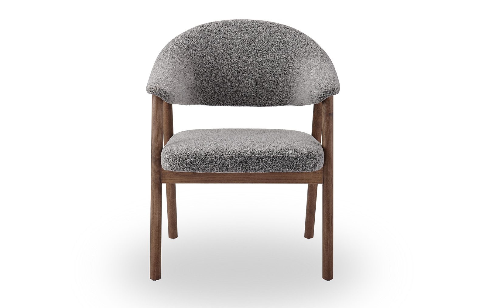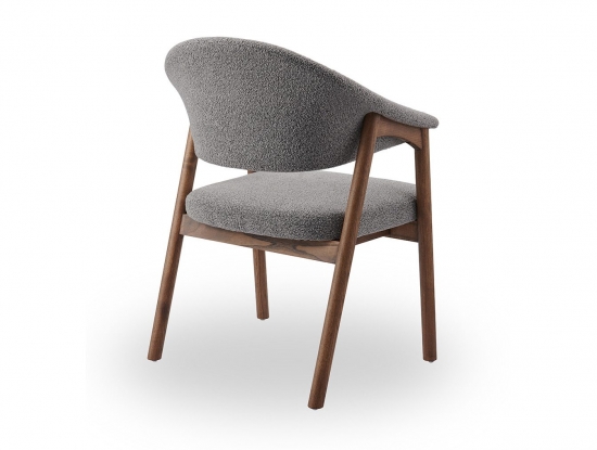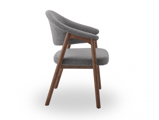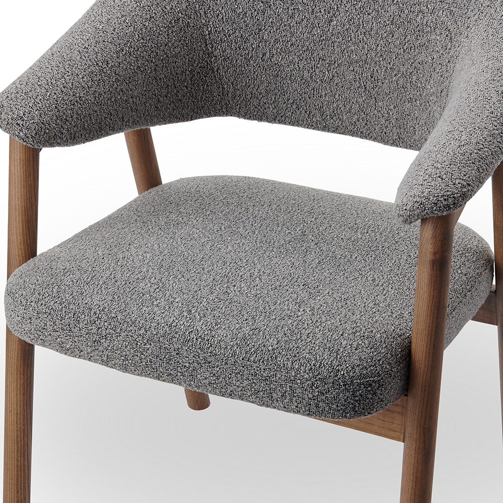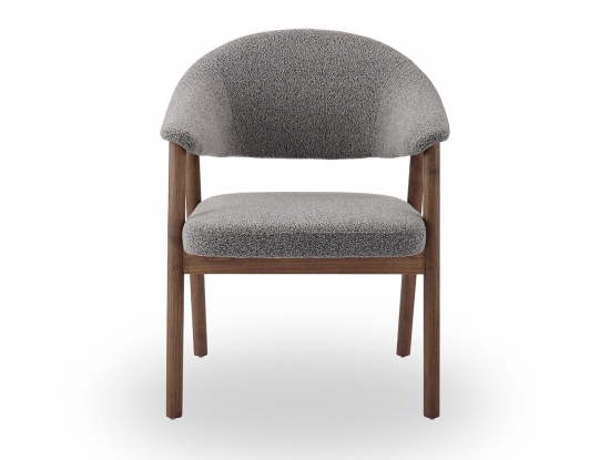 Стул полукресло ARCHEE с мягкими подлокотниками из тканевой обивкой серого цвета. Ножки изготовлены из массива ясеня в цвете орех. Ширина стула 63 см, глубина 59.5 см, высота 83.9 см, высота сидения: 46.2 см.