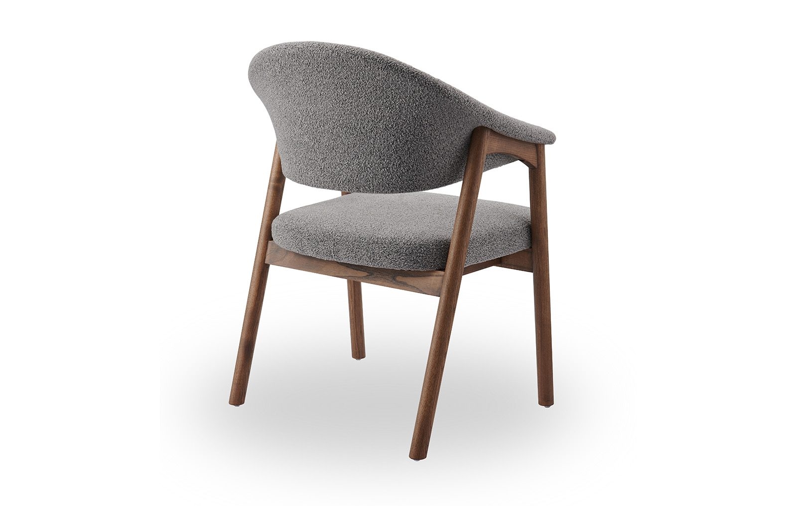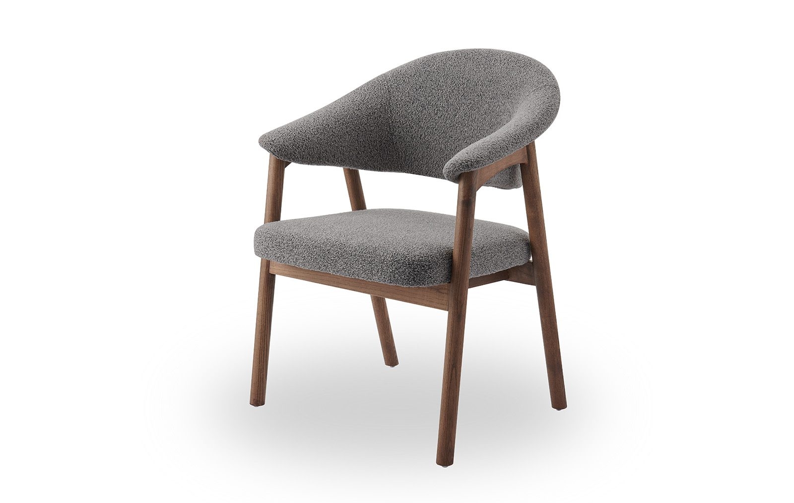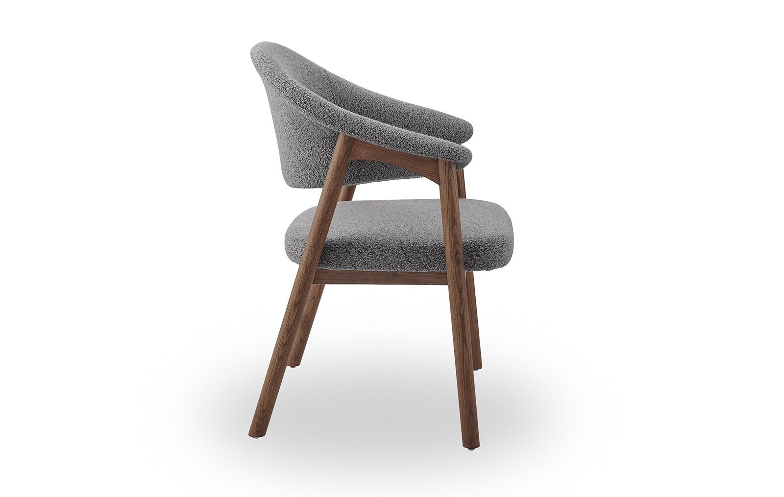 Стул полукресло ARCHEE с мягкими подлокотниками из тканевой обивкой серого цвета. Ножки изготовлены из массива ясеня в цвете орех. Ширина стула 63 см, глубина 59.5 см, высота 83.9 см, высота сидения: 46.2 см.
