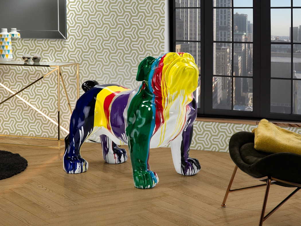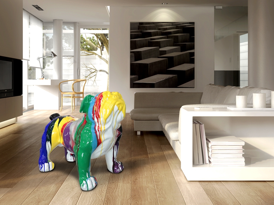 Дизайнерская большая фигура бульдога Hugo в ярких жизнерадостных красках для интерьерного оформления от фабрики Schuller, которую можно использовать и для улицы, благодаря композитному составу полиэстра и стекловолокна. Популярная модель при оформлении европейских интерьеров. Купить просто, сделав заказ в нашем интернет-магазине либо по телефону в Москве с оперативной доставкой, в том числе и в другие города. .