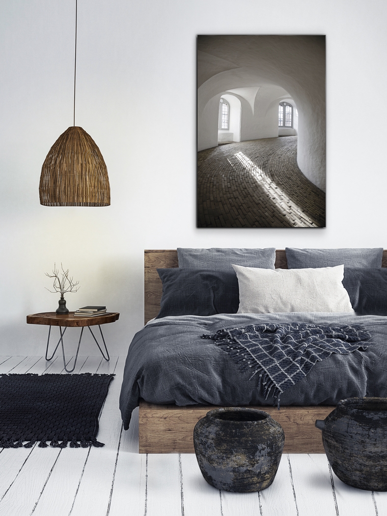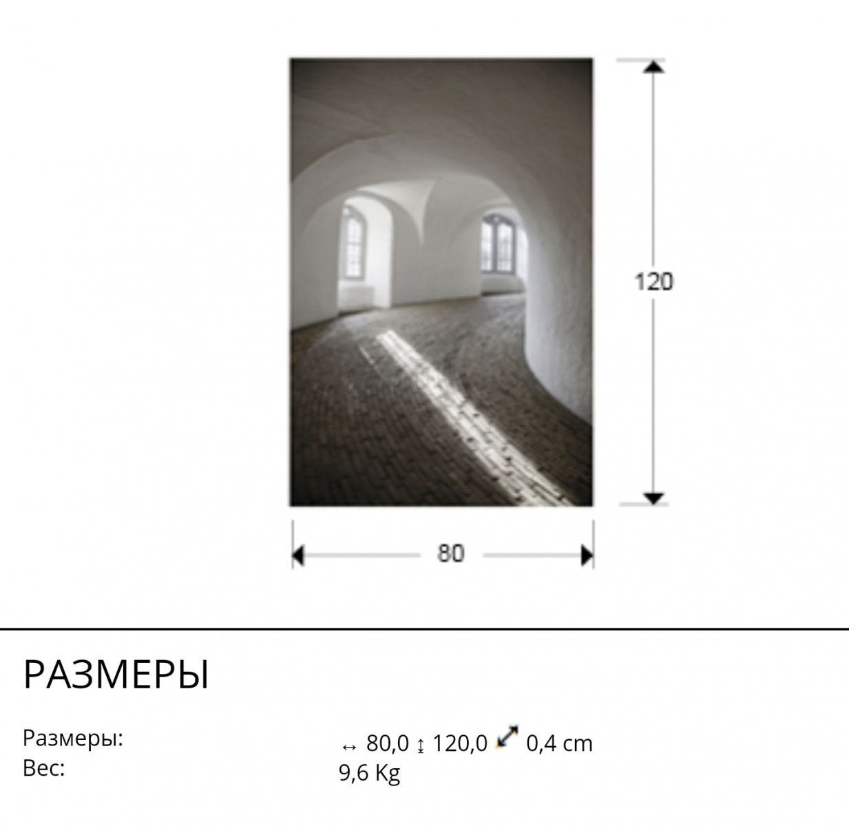 Фотопостер Pasaje со спокойным архитектурным сюжетом и плавными линиями старинного здания изготовлен на тонком закаленном стекле. Настенные крепления уже закреплены на его обратной стороне.
