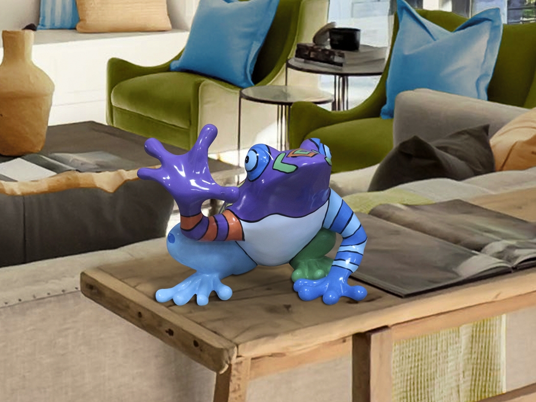 Интерьерная фигурка Ranita для создания хорошего настроения. Лягушка высотой всего 32 см сделана из полирезины- разновидности искусственного камня на основе полиэфирных смол и добавок. Ударопрочный аксессуар с яркой современной покраской, сделанной вручную.