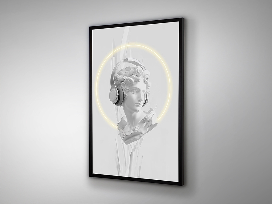 Стильная картина Busto- это сочетание классики и современности: белый классический бюст в наушниках в обрамлении декоративной светодиодной ленты. Холст с принтом, оформленный в черную рамку из МДФ - находка для молодёжных интерьеров. Соединительная коробка на обратной стороне холста. В комплект вилка розетки не входит.
