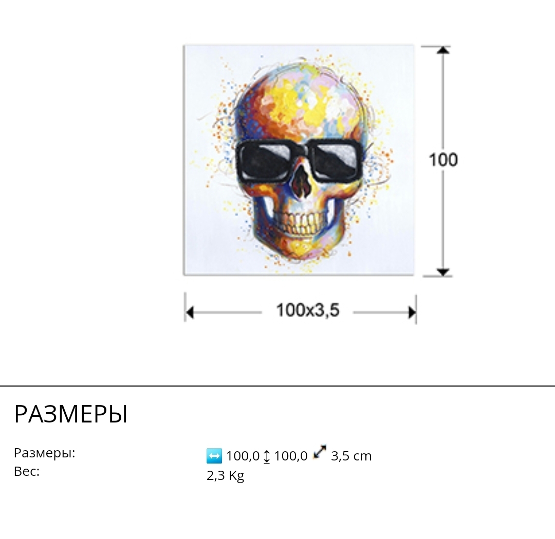 Для тех, кто любит смелые интерьерные решения и относится к жизни с юмором, отлично подходит картина Catrina от фабрики Schuller с изображением яркого улыбчивого черепа в очках.