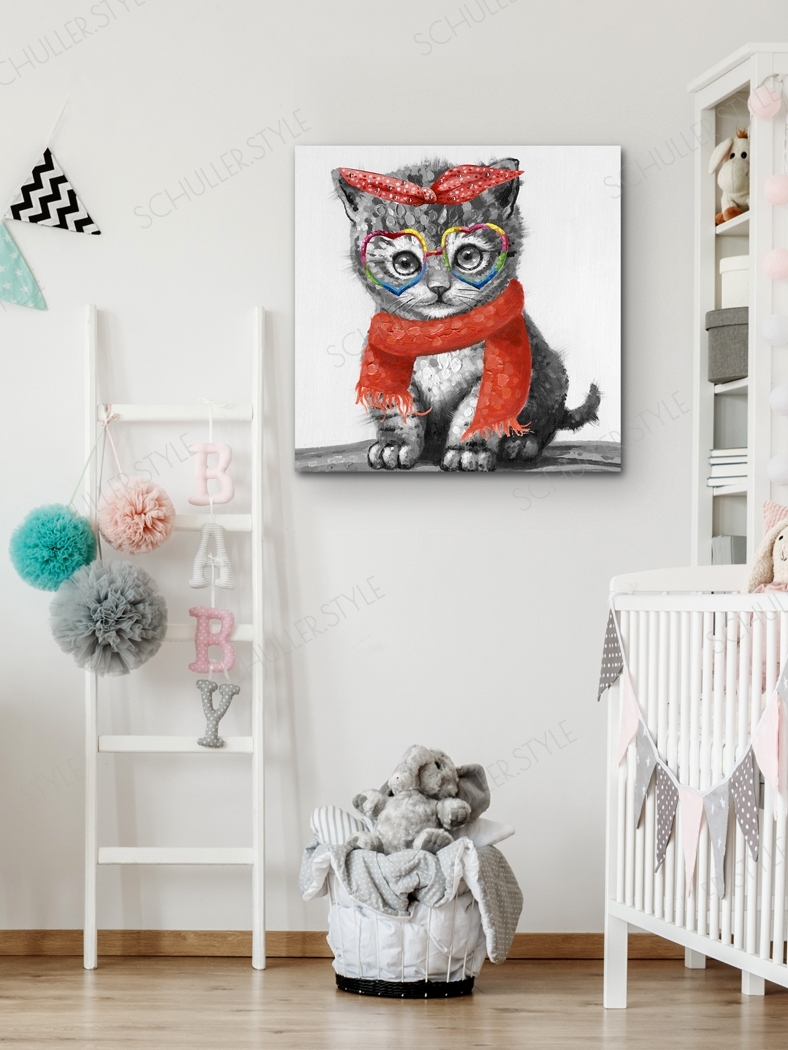 Милейшая и оригинальная картина Kitty от испанской фабрики Schuller написана акрилом на холсте. Она безусловно украсит интерьер современной детской комнаты и станет любимцем не только ребенка. Основной фон чисто- белый. Красный бант на голове котенка украшает россыпь блестящих страз. Полотно закреплено на подрамнике и готово к навеске, крепления уже установлены. Если в квартиру либо загородный дом требуется несколько современных полотен в одном стиле, то у фабрики Schuller их можно легко подобрать, например, к котёнку подойдет картина "Попугаи" , которую также можно купить в нашем интернет-магазине.