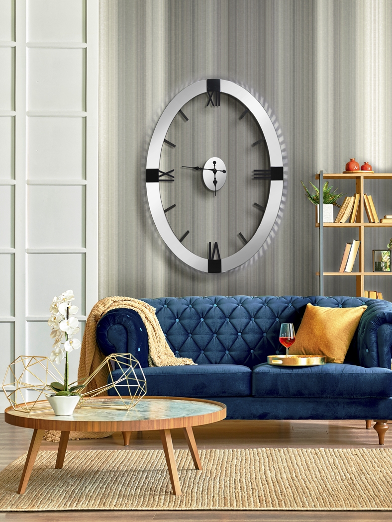 Овальные зеркальные часы Schuller шириной 88 см с актуальным дизайном, когда обруч циферблата крепится отдельно от центрального часового механизма. Декором рамы являются многочисленные зеркальные прямоугольные пластины с фацетом по контуру с внешней торцевой стороны. Все цифры и 4 вставки на раме выполнены из дерева цвета венге ( практически черного). Основа циферблата - мдф черного цвета, которую видно с бокового ракурса. Батарейки в стоимость не входят. Часы на стену из коллекции Times фабрика Schuller выпускает видов: круглые и овальные, поэтому выбрать подходящий размер для оформления современного интерьера квартиры либо загородного дома очень легко. Сделать заказ и купить часы в нашем интернет-магазине можно в любое время на сайте либо позвонив в рабочие часы по телефону в Москве.