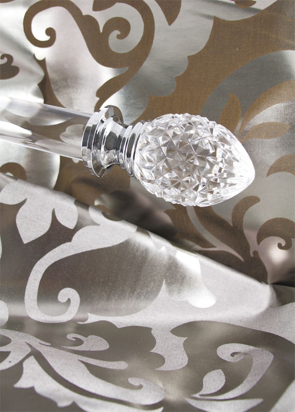 Однорядный дизайнерский карниз 1,6 м в сборе из наличия. Декоративная направляющая диаметром 38 мм изготовлена из прозрачного акрила в стилистике актуальных тенденций оформления интерьера. Её украшают оригинальные наконечники в форме шишек в комбинации с хромированным металлом. Благодаря прозрачности карниз выглядит легко и воздушно, не смотря на толщину. В комплект входят: 1 направляющая, 2 декоративных наконечника, 2 открытых кронштейна 150 мм и 16 колец. Карниз с другими габаритами и количеством направляющих Вы можете купить в нашем интернет магазине, прислав запрос либо позвонив по телефону +7(495)657-73-92 .