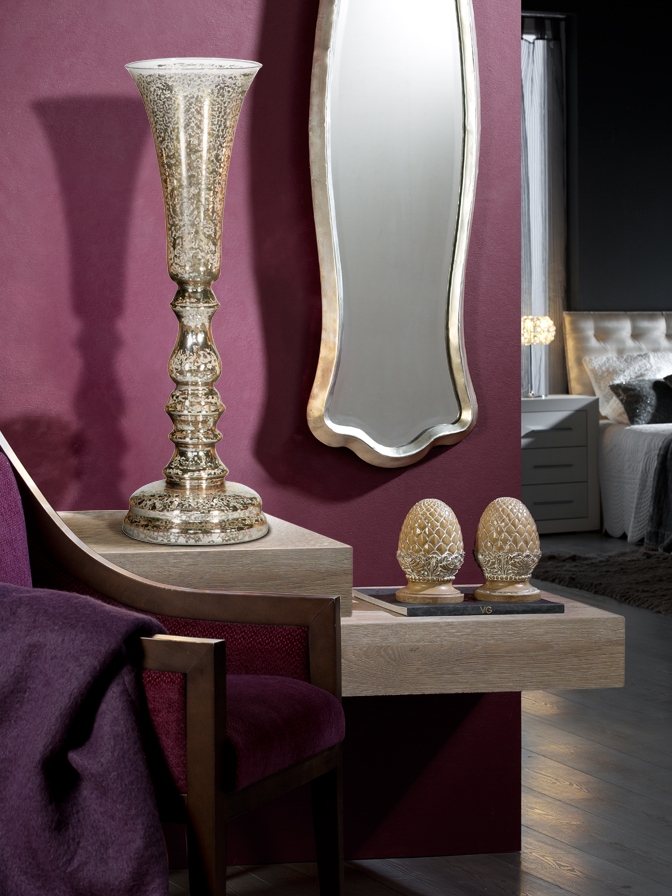 Подсвечник из стекла с декоративными серебристыми вкраплениями.