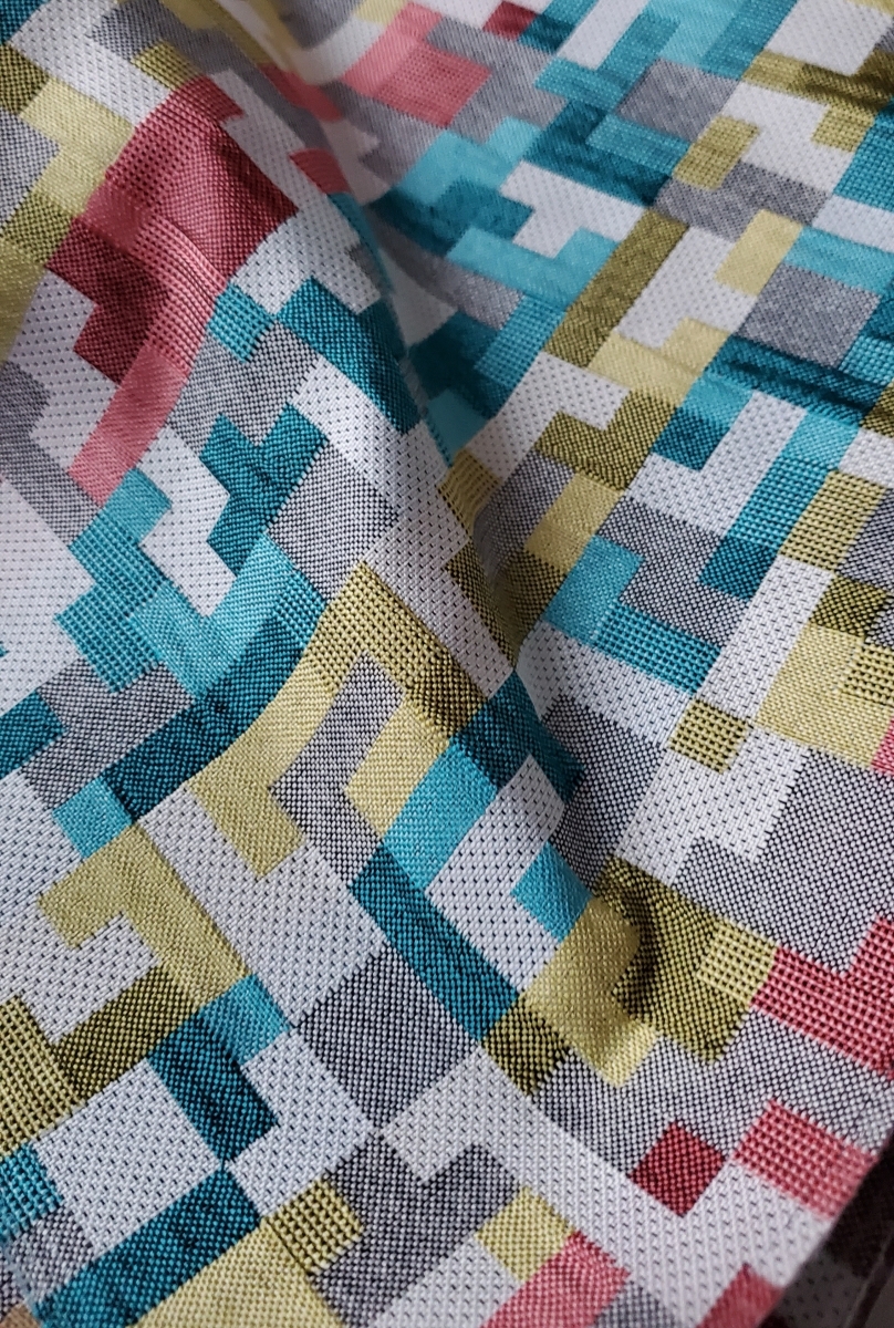 Пластичная портьерная ткань с ярким рисунком Тетрис доступна в нескольких цветовых дизайнах. Объёмный вид разноцветных фигур сочетается с плоской светло- серой основой. Находка для оформления современных интерьеров, особенно, детской комнаты. Состав с содержанием 100% ПЭ доступен в уходе: возможность стирки при 30 градусах без отжима. Глажка утюгом при низкой температуре. Допустимо отпаривание, температура не выше 110 ̊С. Плотность ткани 225 г/м2 .