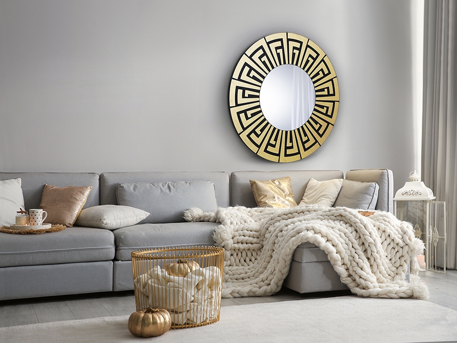 Оригинальное зеркало Aquiles от бренда Schuller с греческими мотивами, оформленными золотой фольгой под стеклом. Основа изготовлена из МДФ чёрного цвета. Купить любое понравившееся зеркало из каталога можно в нашем интернет-магазине в Москве с доставкой по России.