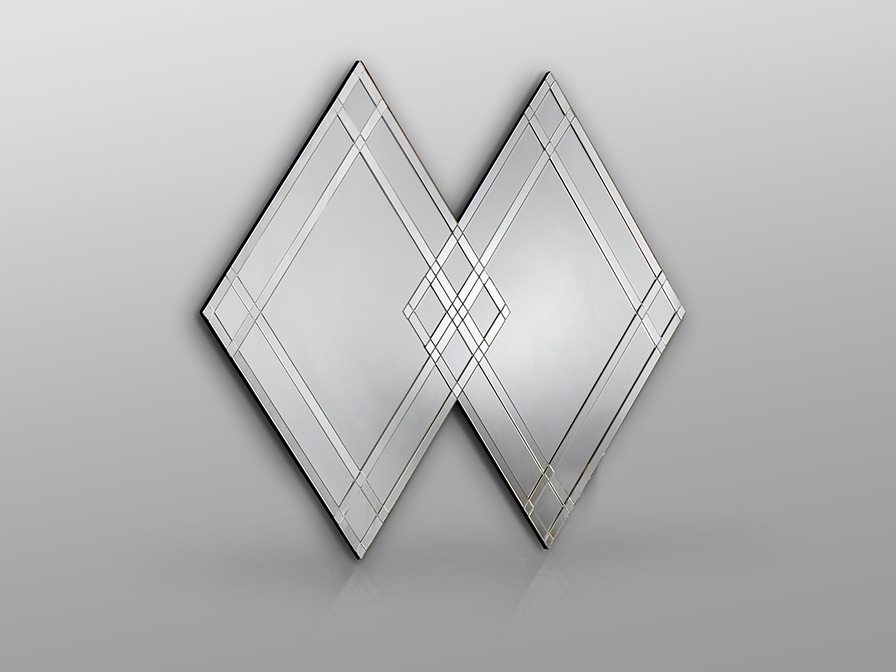 Эффектная геометрия. Современное зеркальное панно- композиция Vega из двух больших зеркальных ромбов на единой черной основе из МДФ, высотой 110 см в обрамлении рамы из зеркальных элементов. Не нужно ничего клеить, собирать- всё уже готово для навески и оформления современного интерьера!