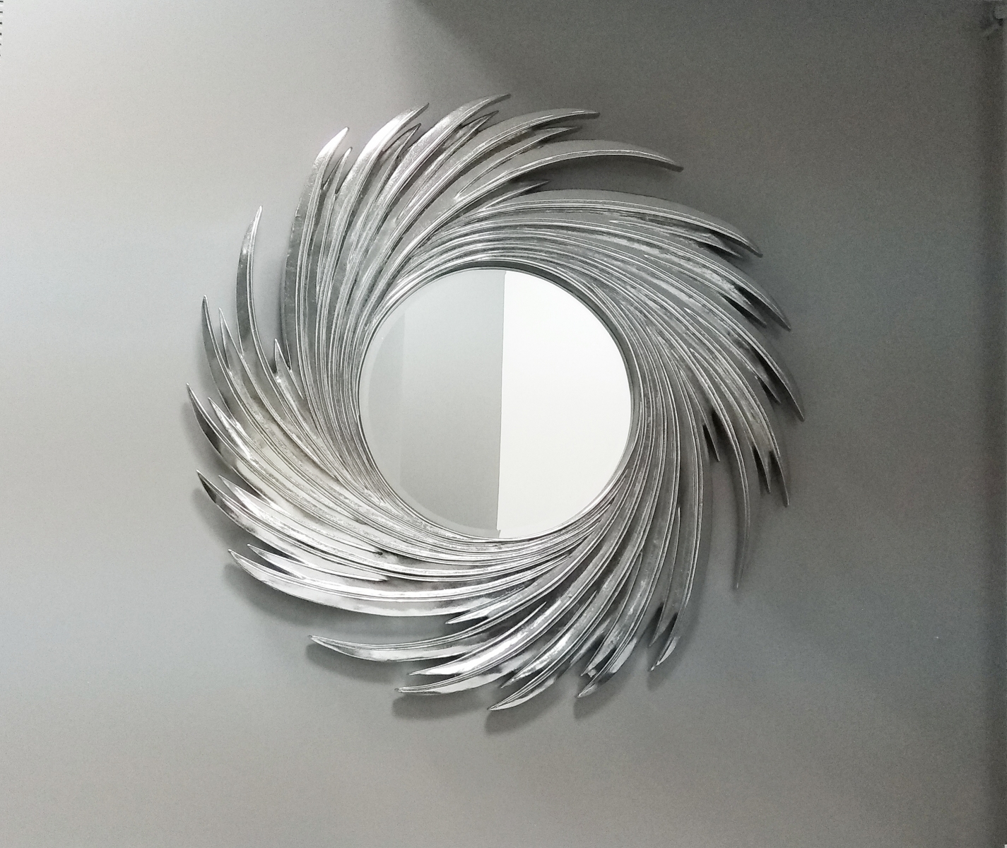 Круглое эффектное зеркало с фацетом в облегченной раме в виде солнечных лучей с отделкой серебряной фольгой. Зеркало в виде солнца станет стильным украшением прихожей, уютной спальни, гостиной, офиса, оформленных в классическом либо современном стиле. Серебряный цвет универсален для многих интерьеров. Зеркало "Солнце" представлено из наличия, поэтому его можно купить в нашем интернет магазине с быстрой доставкой в Москве.