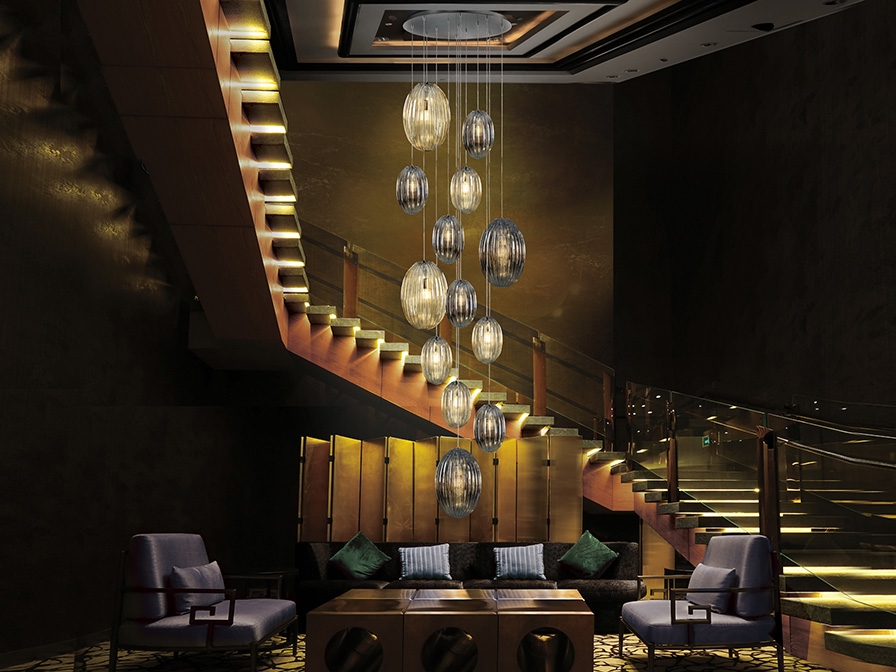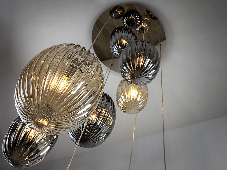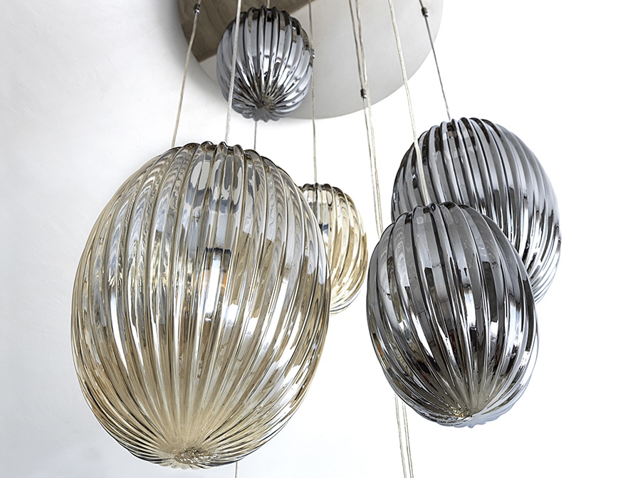 Прекрасное решение для освещения лестничного пролета в загородном доме либо общественной зоны отдыха- большая люстра каскад Ovila от фабрики Schuller. Овальные фактурные плафоны дымчато- зеркального и янтарного цвета разных диаметров: 20 и 30 см приглушают яркий свет от лампочек с цоколем Е 27, создавая уютную обстановку вокруг. Основа сделана из хромированного металла. Максимальная высота подвешивания 350 см.