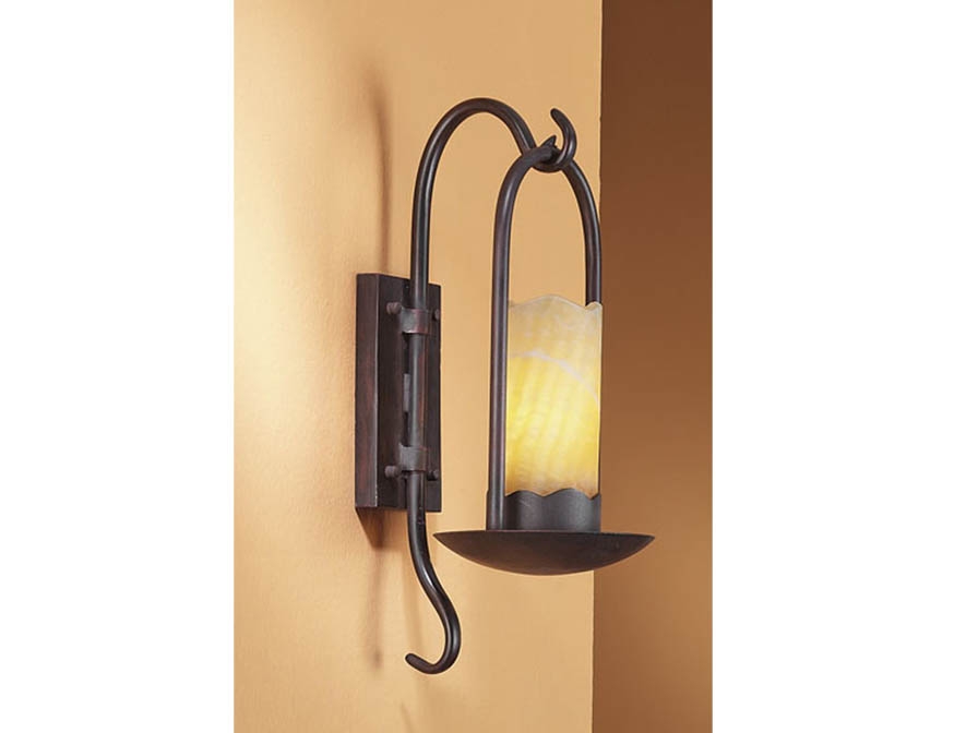 Бра из тёмного металла с подвесным массивным плафоном в виде свечи из натурального камня.