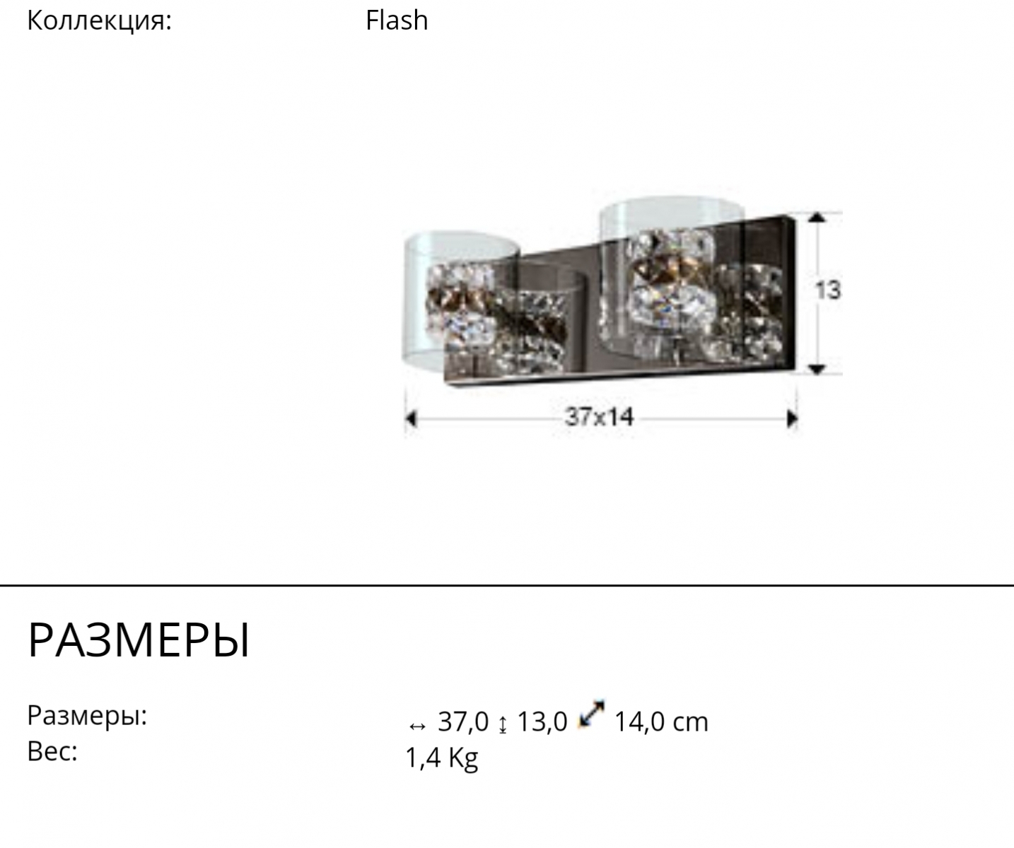 Красивый настенный светильник Flash с двумя эффектными стеклянными плафонами. Сделан из металла с хромированным покрытием. Особенность этой коллекции- двойные плафоны: внешние цилиндрические изготовлены из штампованного прозрачного стекла, внутренние- из квадратных кристаллов прозрачного и дымчатого стекла с огранкой. 2 съемные лампочки с цоколем G9. Максимально возможная мощность led 2*53 Вт.