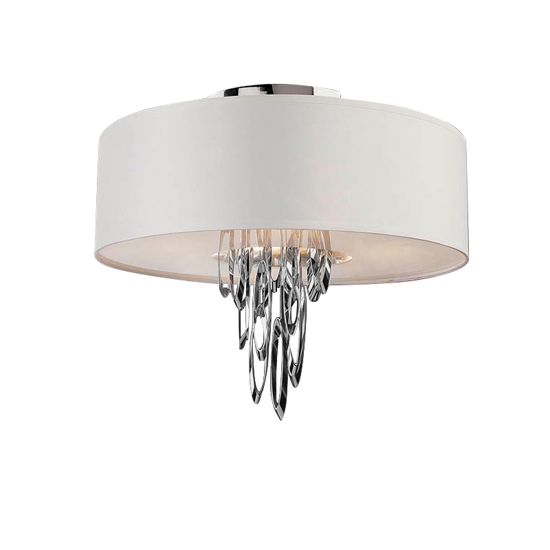 Потолочный, современный светильник из коллекции Domo с белым абажуром и стильными, стальными подвесами ассиметричной формы на цепочках в центре. Нижний рассеиватель выполнен из полупрозрачного метакрилата. Лампочки: 4шт E14 LED 4W. Фабрика Schuller выпускает актуальные модели современных светильников, зеркал и мебели из полированной стали с возможностью комплектации всего интерьера "под ключ".
