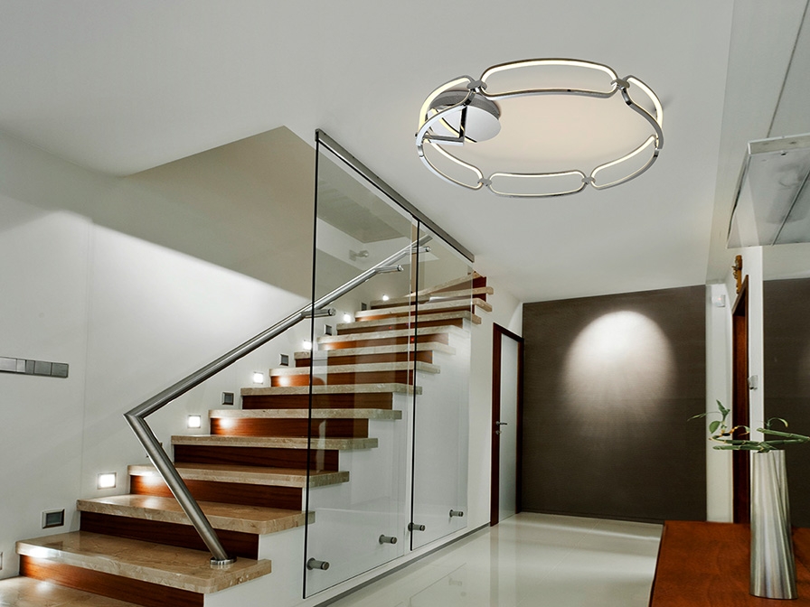 Большой потолочный светодиодный светильник с оригинальным абажуром из легкого алюминия с покрытием "хром". Силиконовые рассеиватели опалового цвета расположены с внутренней стороны по всему контуру светильника. Световой поток: 65W LED, 5850 Lm, теплый свет 3000 K. Эта модель- одна из многих, которые выпускает фабрика Schuller в коллекции Colette для оформления современного интерьера.