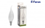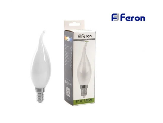 Светодиодная лампочка "Свеча на ветру" от российского бренда Feron с цоколем E14, 15Вт, дневной свет 4000K, матовая. Световой поток 1280lm. Соответствие лампы накаливания 140Вт. Индекс цветопередачи 80Ra.