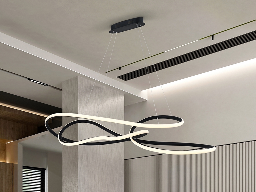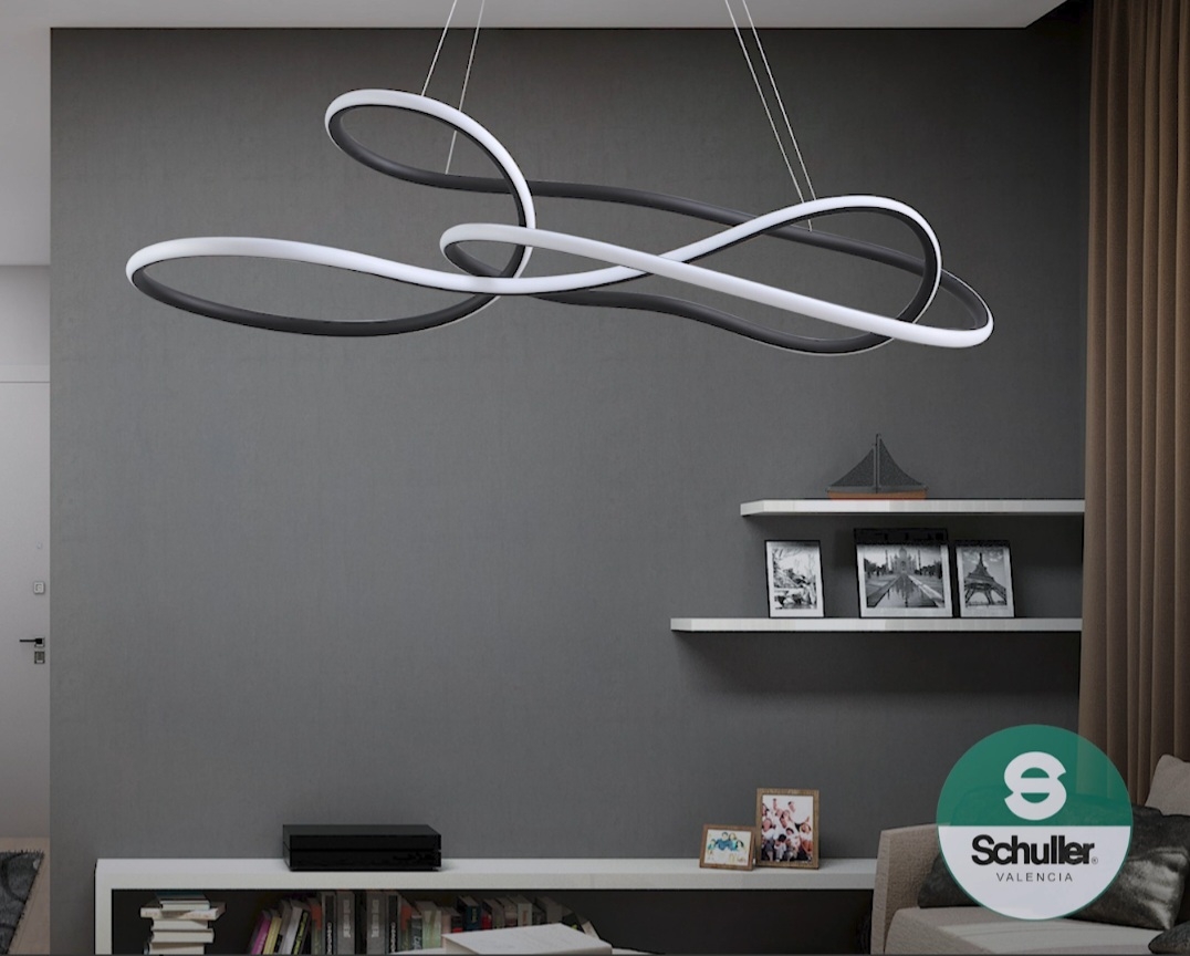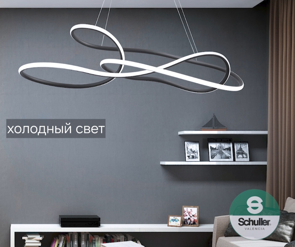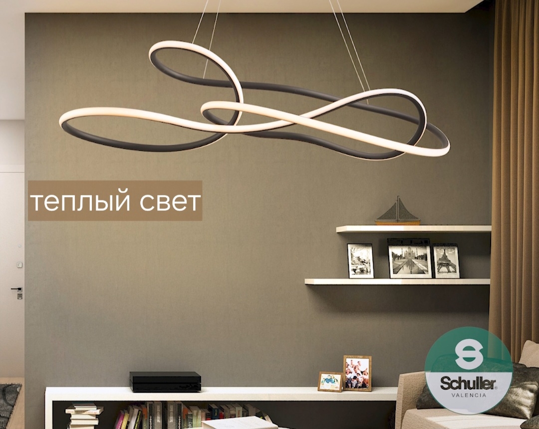 Эффектный большой подвесной светильник- абстракция Evania арт.227643. Чёрная алюминиевая лента матового цвета общей длиной 120 см с силиконовым рассеивателем опалового цвета. Новинка февраля 2025 года фабрики Schuller доступна к покупке и поставляется с пультом управления с возможностью регулировки цветовой температуры от 2700 К до 5000 K и яркости освещения. 85W LED, 5.100 lm.