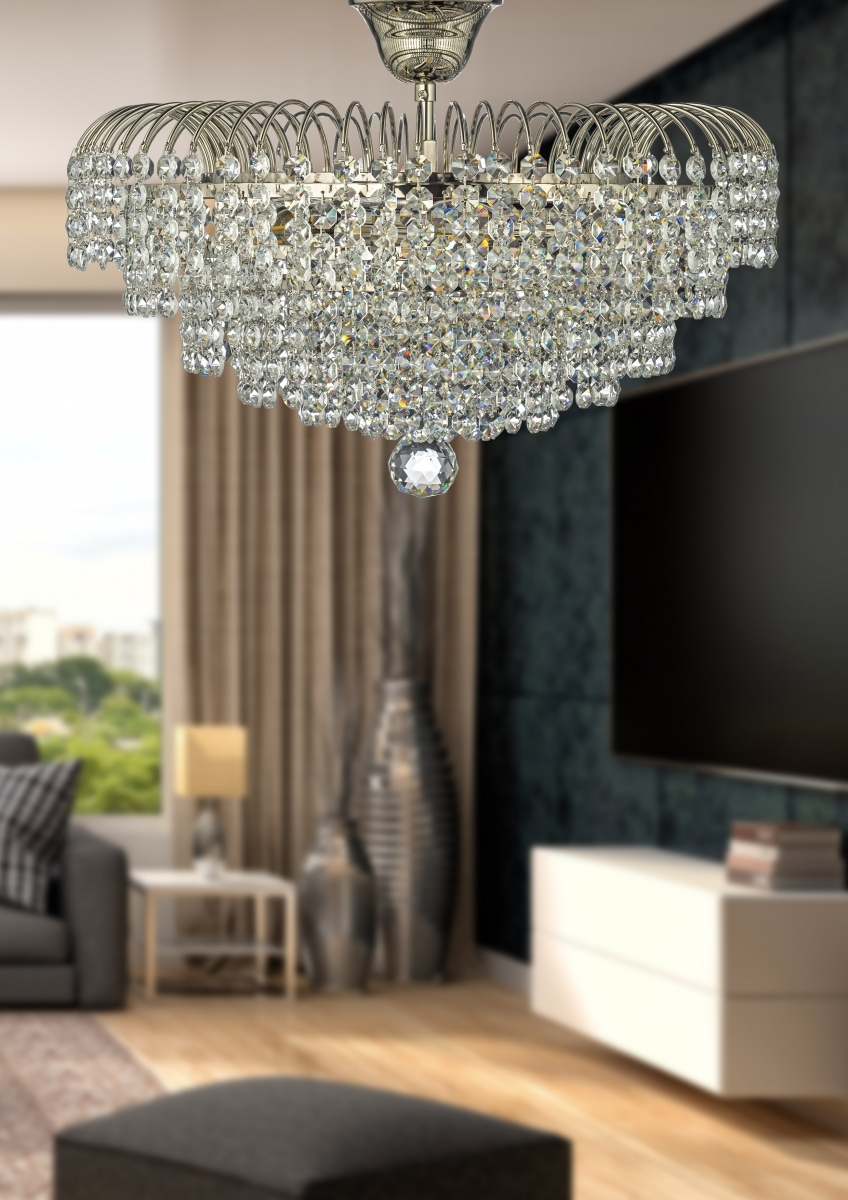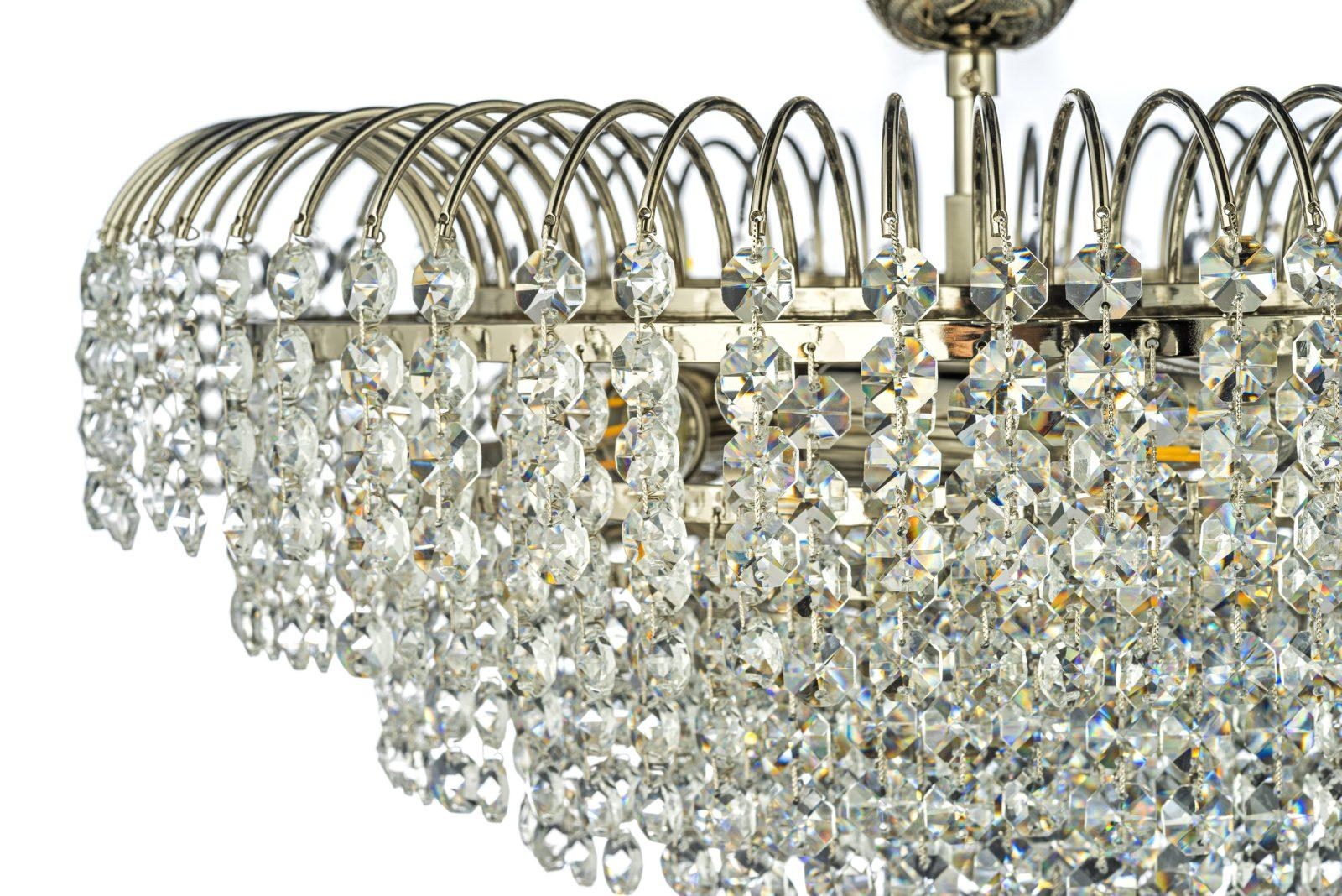 Потолочная эффектная люстра из коллекции Elba E от Arti Lampadari диаметром 40 см в форме изысканного водопада хрустальных подвесок а тонких трубочках и обручах. Никель в отделке каркаса оттеняет стекло и красиво бликует. Украшением светильника является центральная большая капля из прозрачного стекла с огранкой. Модель для современных помещений с различной стилистикой. Количество лампочек: 5 шт с цоколем Е14, с максимальной мощностью по 40 W.