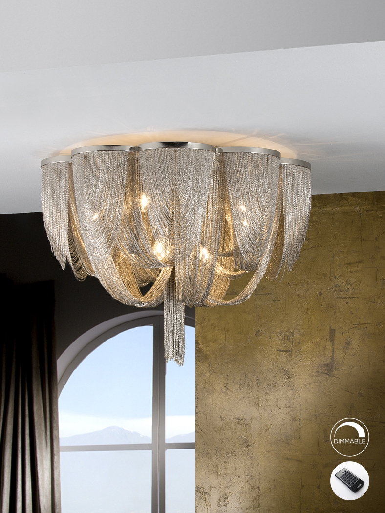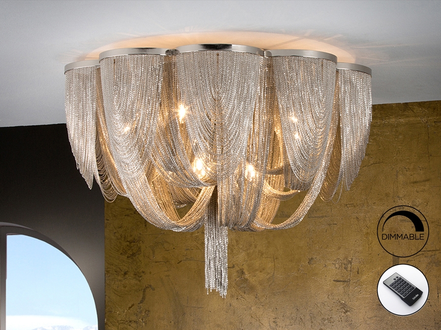 Современная большая потолочная люстра из коллекции Minerva образована тонкими ниспадающими металлическими цепочками с покрытием "никель". Эффектная и современная модель. 10 лампочек с цоколем G9 LED 4.5W теплого света 3000К входят в стоимость. Максимальная мощность: 10x42W led.