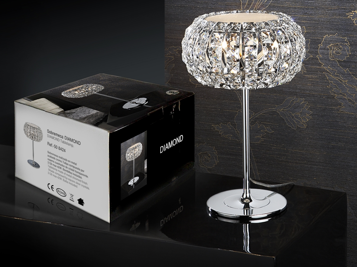 Современная настольная лампа Diamond со сферическим плафоном из граненых, прозрачных кристаллов, которые отражают свет и создают интересные световые эффекты на стенах и предметах интерьера. Основание лампы изготовлено из хромированного металла, что обеспечивает прочность и долговечность конструкции. Сверху источник света прикрыт круглым рассеивателем опалового цвета. Лампочки в комплекте: 3шт G9 LED 3,5W. Максимально допустимаямощность: 3x 42W.