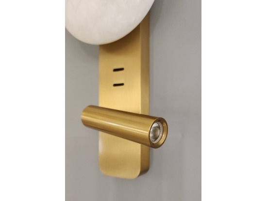 Настенный светильник 7164/9WL из коллекции ALBERGO изготовлен с металлическим корпусом бронзового цвета. Всего 2 комфортных источника теплого света: 5W у матового плафона из испанского алебастра диаметром 15,6 см в верхней части бра и 3W у поворотного цилиндрического спота в нижней. Угол вращения спота ― 355°, угол рассеивания ― 60°.
