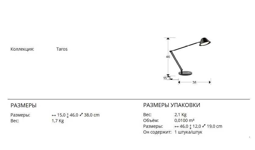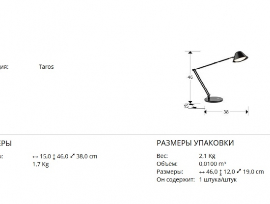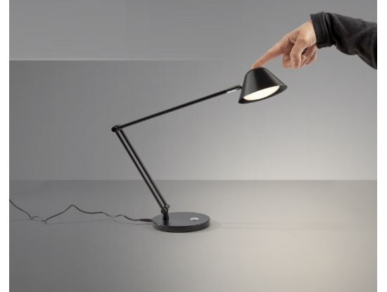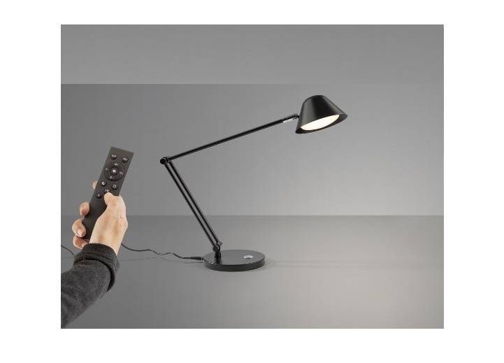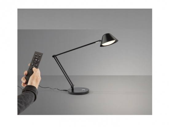 Настольная светодиодная лампа из коллекции Taros с основанием из металла с черным матовым покрытием. Плафон поворотный в двух плоскостях. Ножка также регулируема по высоте до 46 см. Световым потоком можно управлять как с кнопки на светильнике, так и с пульта управления, что удобно, когда нужно отойти или выйти из помещения. Мощность 10W LED, 900 lm, цветовая температура регулируется в диапазоне 3000-6500 K.