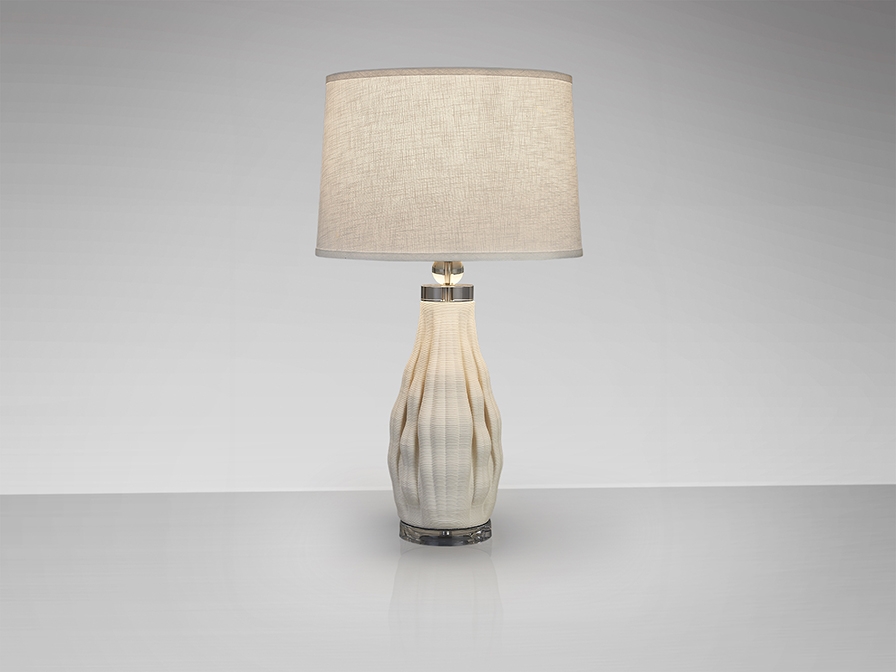 Высокая настольная лампа Tessa изготовлена по современным технологиям из 3D керамики белого цвета. Основание и декоративный шарик на ножке сделаны из прозрачного акрила. Металлические делали хромированные. Абажур из белой ткани. Mаксимальная мощность: 20 Вт led.