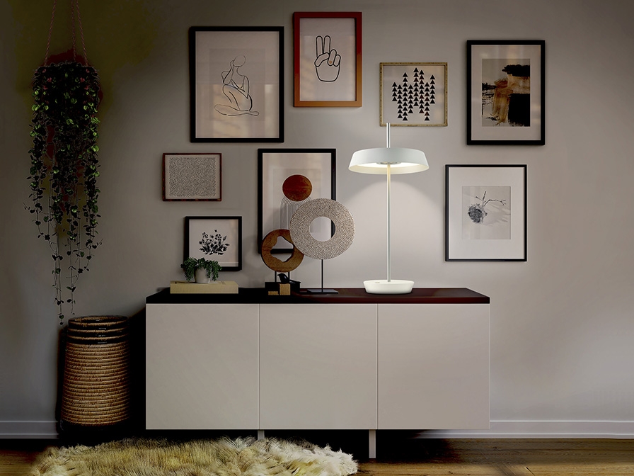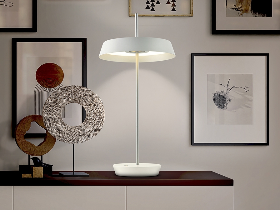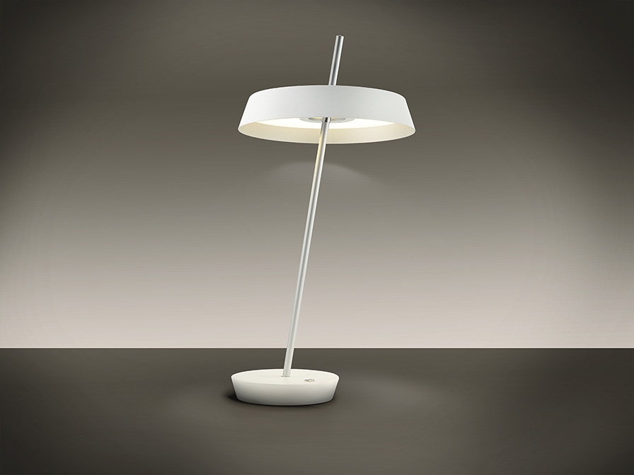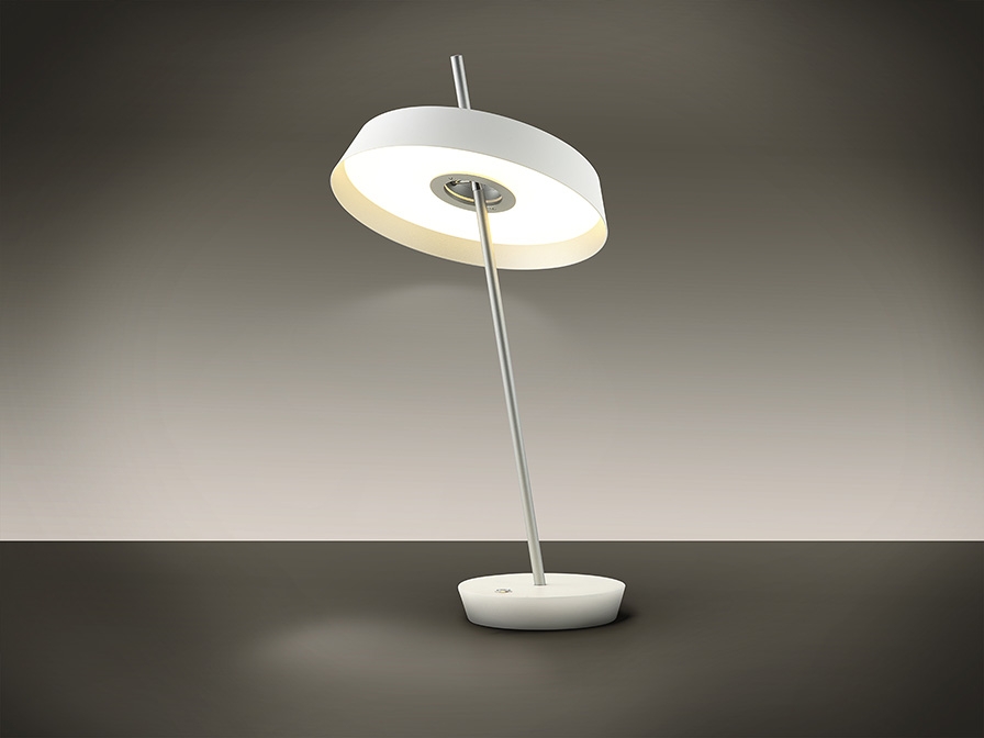 Оригинальная настольная светодиодная лампа Vertigo с регулируемым наклоном. Удобная и практичная: можно повернуть абажур либо наклонить тонкую ножку, направляя световой поток в нужную сторону. Изготовлена из металла, окрашенного матовой белой краской с отделкой деталей и ножки серебром. Абажур с опалово-метакрилатным рассеивателем. Световой поток 12W LED, 1080 lm, теплый свет 3000K. Средний срок службы рассчитан на 30 000часов.