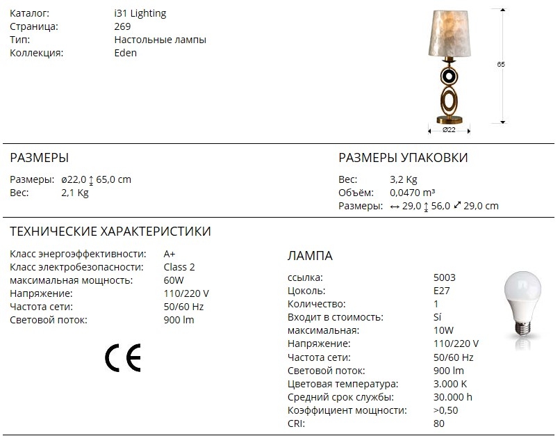 Лампочка: 1 шт E27 LED 10W тёплого света 3000К в комплекте.
