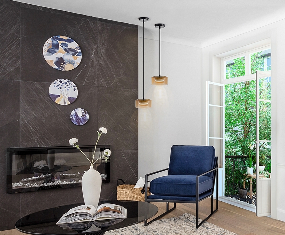 Одиночный подвес Olaia с янтарным стеклянным абажуром и основанием из металла с матовой черной отделкой. В качестве акцента используется деталь золотого цвета у основания цилиндрического плафона. Регулируется по высоте. В комплект поставки входит 1 светодиодная лампочки с цоколем GX53 мощностью 6 Вт. Уместно и стильно смотрится и в кухне над столом, и в спальной комнате по краям кровати, и в гостиной. Новая коллекция 2025 года от Schuller.