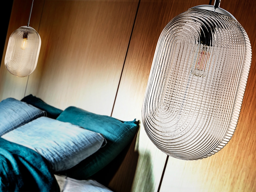 Подвес из коллекции Tensai с объемным плафоном высотой 34 см из рифленого прозрачного стекла с каркасом из металла с покрытием "хром". Высота регулируется по необходимости от 65 до 190 см. Лампочка: 1шт. с цоколем E27 LED 8 Вт уже в комплекте. Максимально допустимая мощность- 60 Вт.