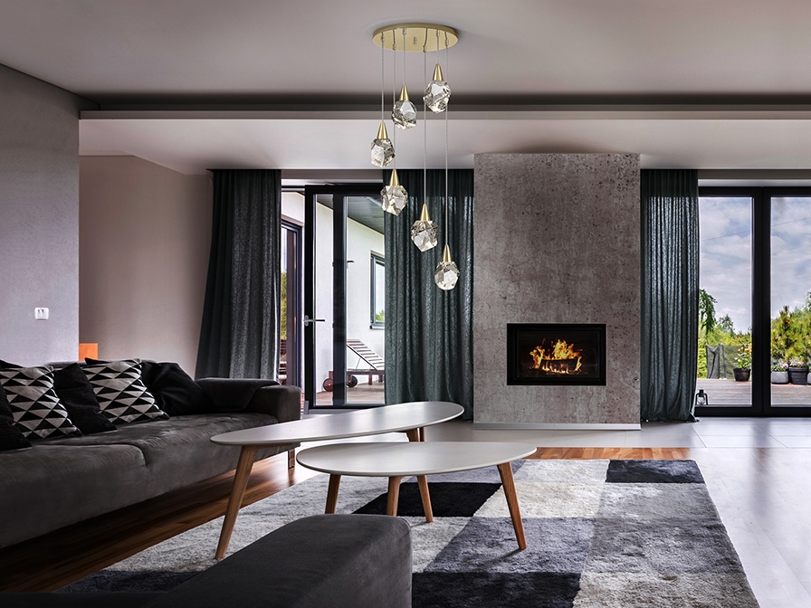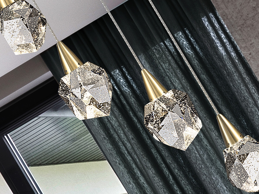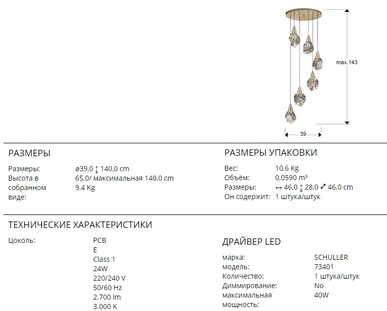 Люстра из новой коллекции Aquaria с шестью многогранными подвесами из цельного стекла с декоративными пузырьками внутри. Каркас светильника изготовлен из металла с отделкой "матовое золото". Регулируется по высоте каждый плафон отдельно. Светодиод: 24 Вт. 2700 Lm. теплый свет 3000 К.