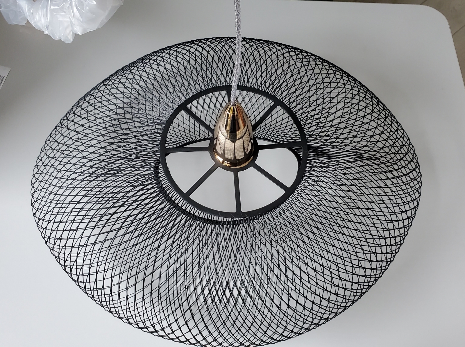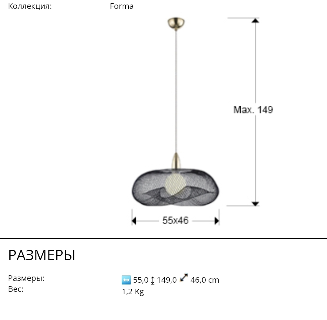 Оригинальная геометрия -отличительная особенность новой коллекции подвесов Forma с абажуром из тонкой черной металлической сетки в сочетании с глянцевым золотом с совсем легким розовым оттенком на деталях. Отличное решение для современных интерьеров. Удачно смотрится и над барной стойкой на кухне, и в спальне у кровати. Размер плафона 55*46 см. Прозрачный кабель не отвлекает внимание. 1 светодиодная лампочка с цоколем E27 мощностью 15 Вт входит в комплект.