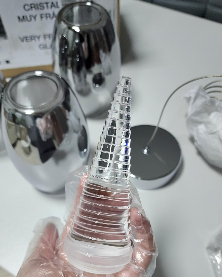 Подвесной LED светильник Nebula с 3 плафонами Основание из металла с покрытием "хром". Двойной абажур: внешний - из зеркального стекла, внутренний - из прозрачного поликарбоната в форме конуса, с регулируемой высотой, 3 х 5W LED, 3000 K.