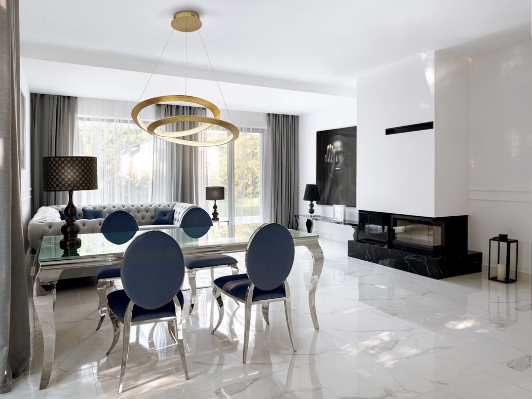 Обеденный стол, как на фото, можно выбрать из коллекции Barroque , а подходящий фотопостер на стекле из коллекции настенного декора.