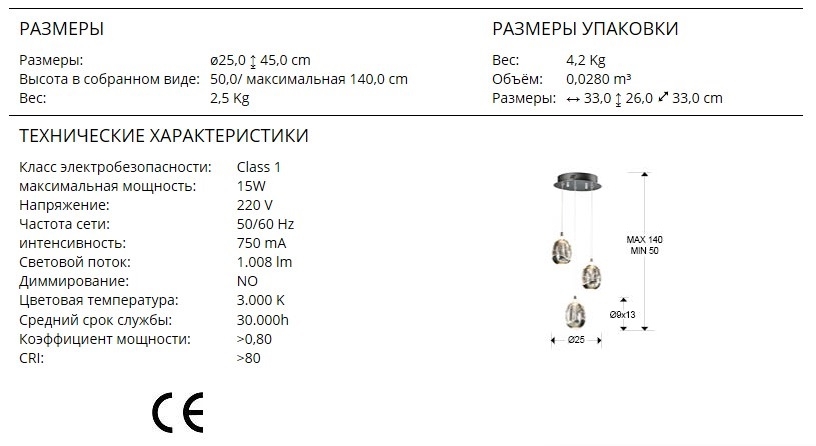 Подвесной светодиодный светильник с тремя каплевидными прозрачными плафонами из стекла, заполненными многочисленными пузырьками воздуха, отражающими попадающий на них свет. Отделка круглого основания в цвете "хром". Высота каждого подвеса регулируется. Лампочки/диоды уже внутри каждой "капли", светят и вверх, и вниз: 15W LED, 1008 Lm, теплый свет 3000К.