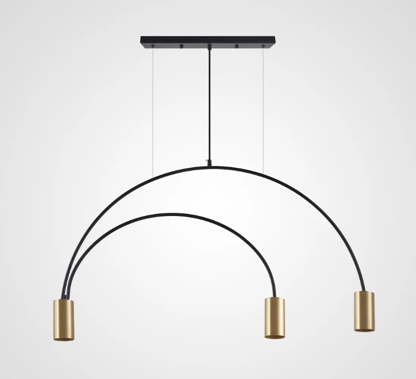 Современная популярная арочная модель светильника Arc от ImperiumLoft с черной отделкой каркаса и с тремя акцентными плафонами золотого цвета, направленными вниз. Благодаря общей форме можно использовать несколько светильников, создавая различные композиции. Лампочки сменные с цоколем Gu10 3 шт с максимально допустимой мощностью 40 Вт ( в комплект не входят). Общая мощность max 120 Вт. Кабель с регулируемой длиной до 250 см открывает возможность для навески светильника в помещениях с высокими потолками.
