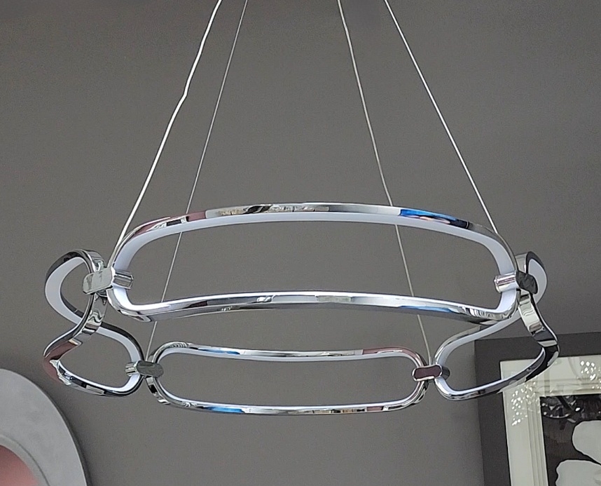Подвесной стильный led светильник из эффектной коллекции Colette с изящными формами плафона от фабрики Schuller. Алюминиевый каркас в цвете "глянцевый хром" с силиконовым диффузором опалового цвета по периметру люстры. 54W LED, 4860 lm, 3000 K. Прекрасный вариант для оформления обеденной зоны в современном интерьере. Фабрика предлагает два варианта отделки в коллекции Colette: золото и хром. Купить светильник- новинку Schuller нужного цвета легко в нашем интернет-магазине, оформив заказ либо позвонив по телефону в Москве.